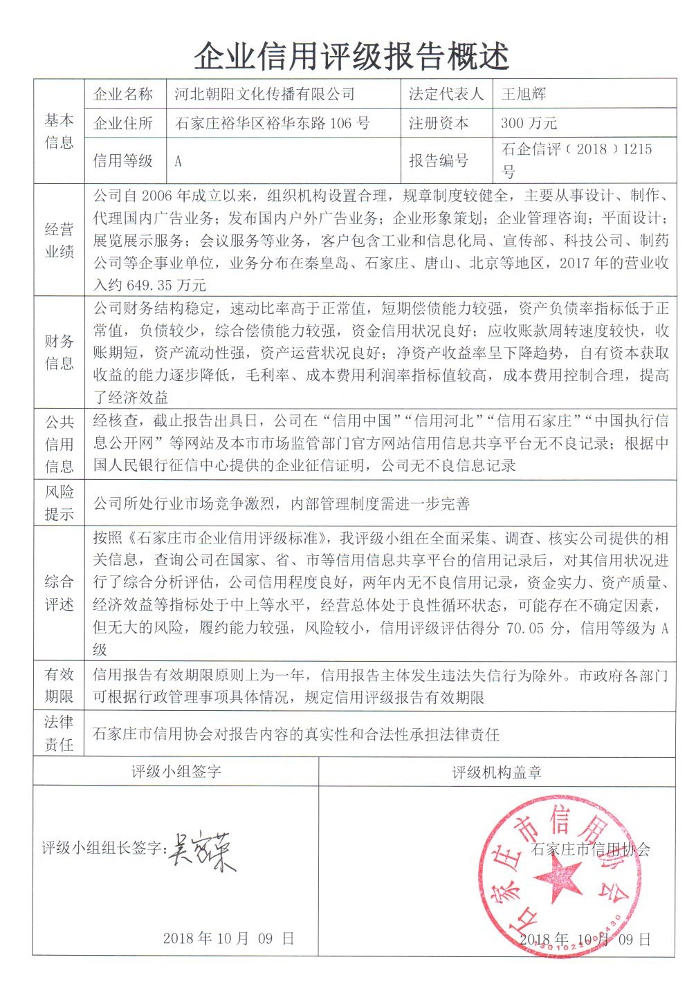 信用报告公示