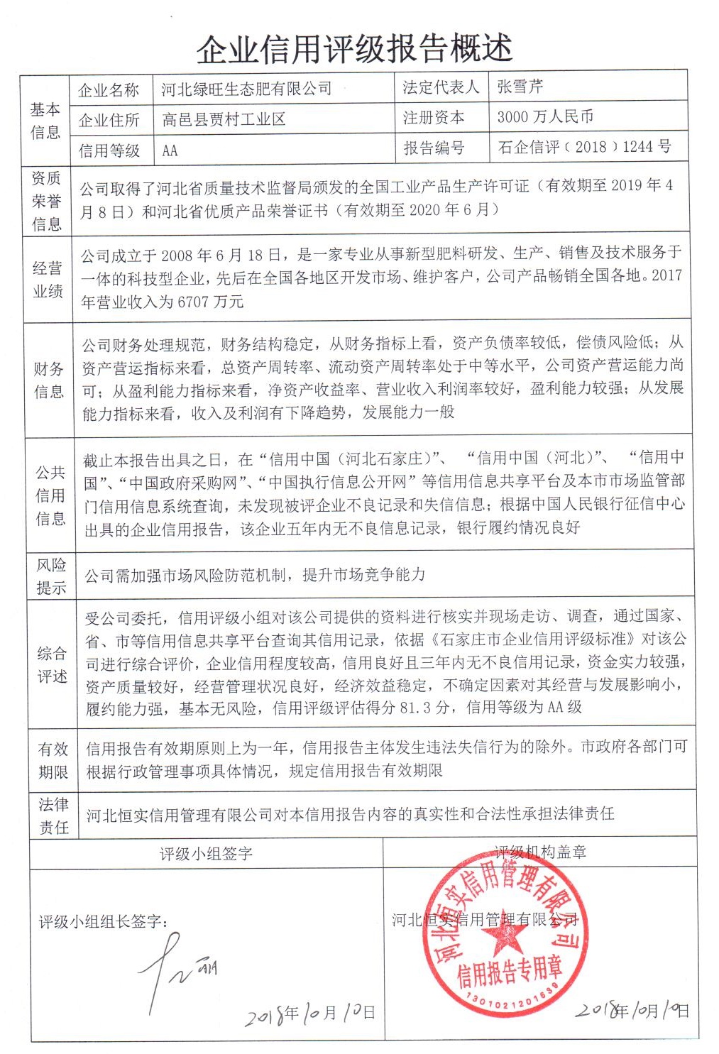 河北绿旺生态肥有限公司