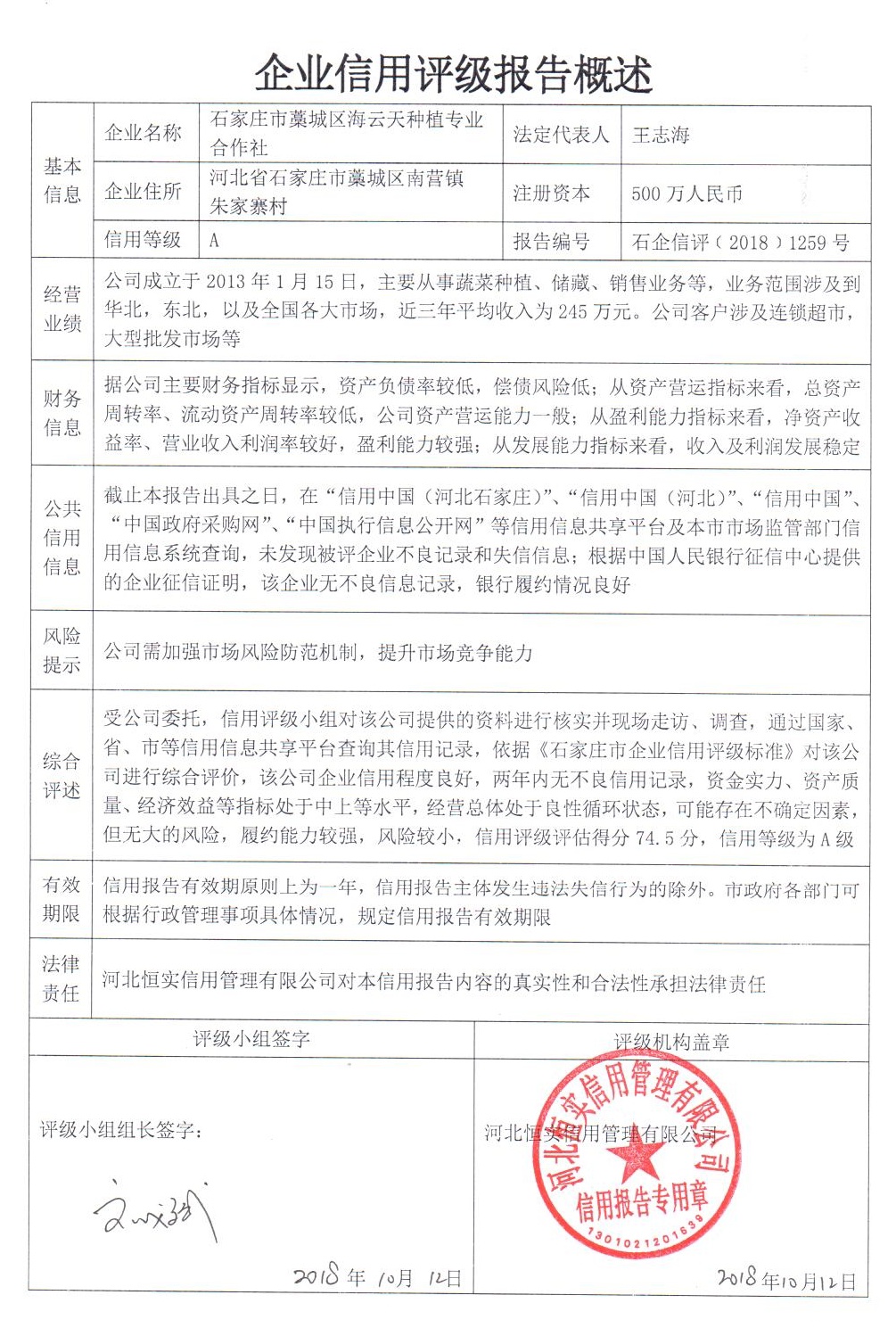 石家庄市藁城区海云天种植专业合作社