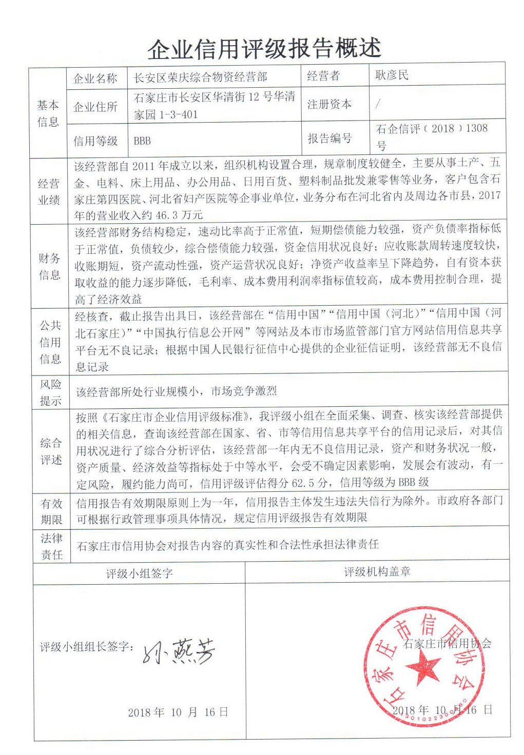 长安区荣庆综合物资经营部