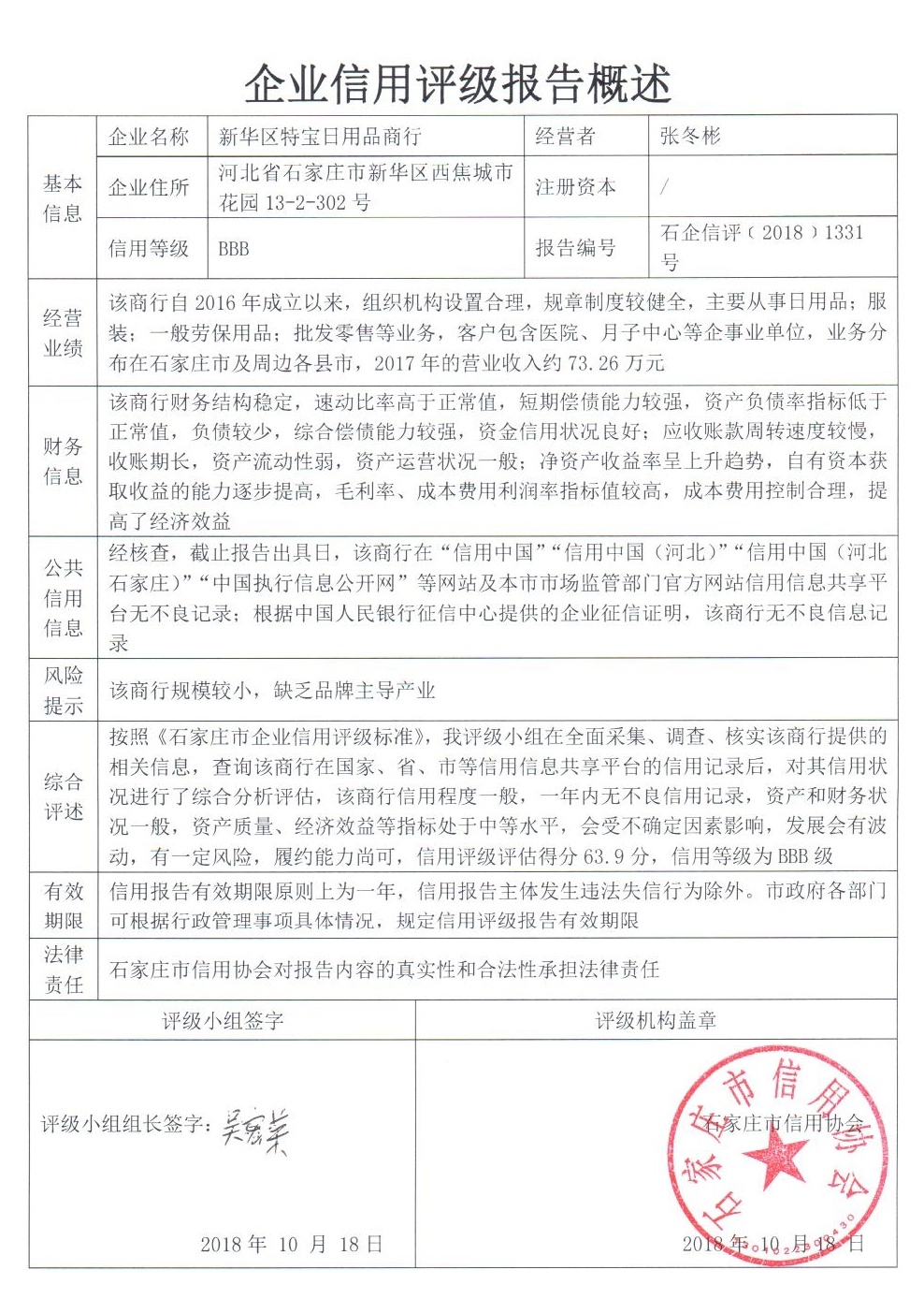 新华区特宝日用品商行