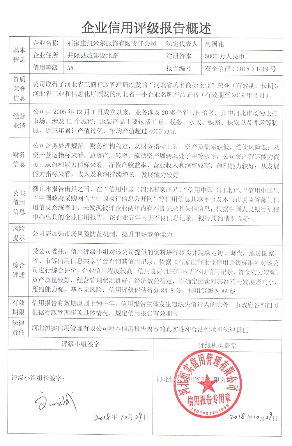 石家庄凯米尔服饰有限责任公司