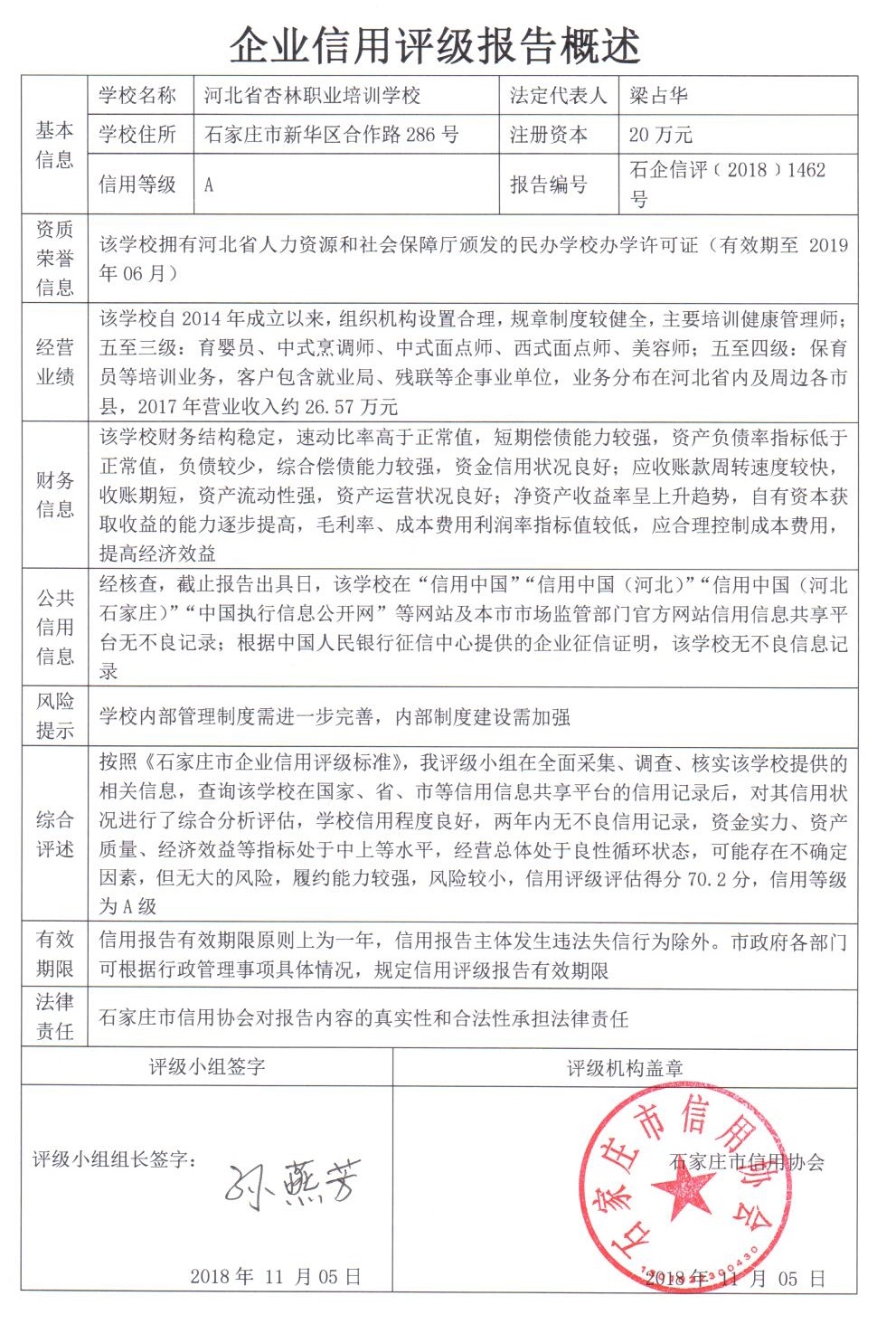 信用报告公示