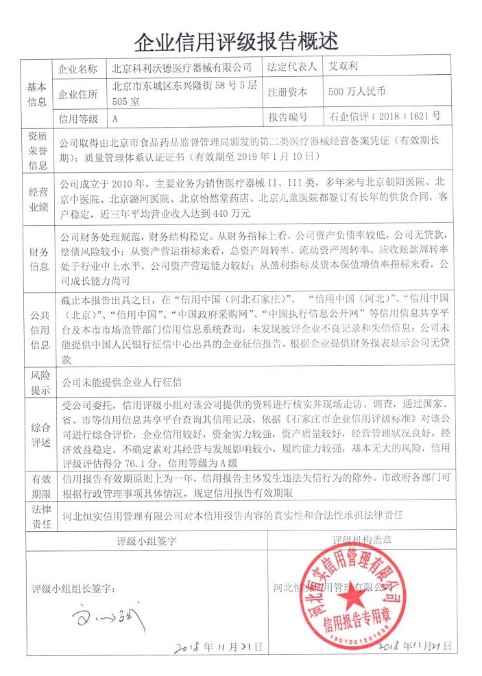 北京科利沃德医疗器械有限公司