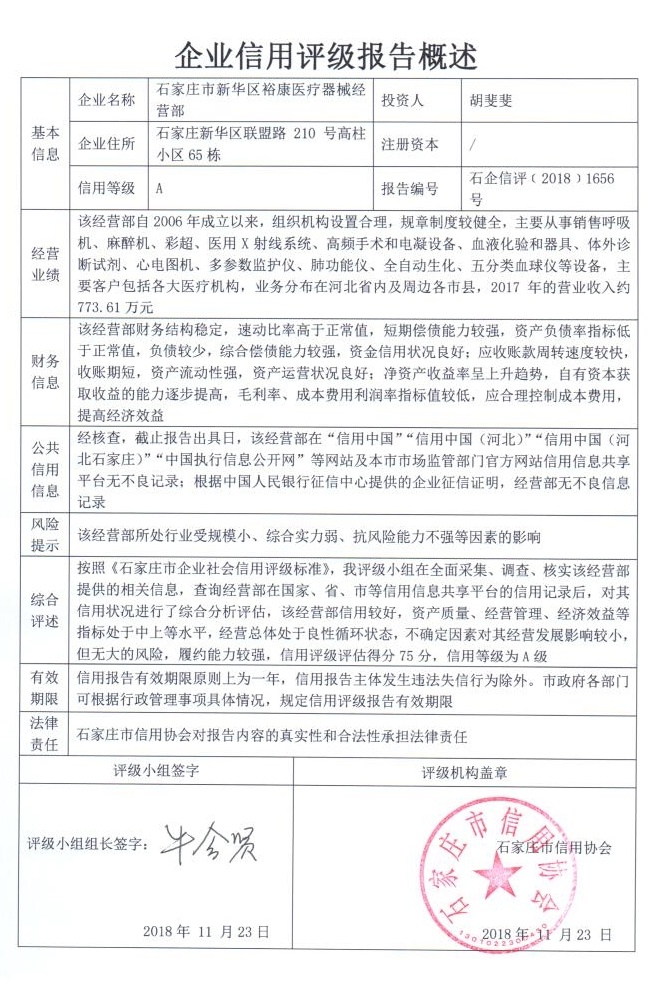 石家庄市新华区裕康医疗器械经营部