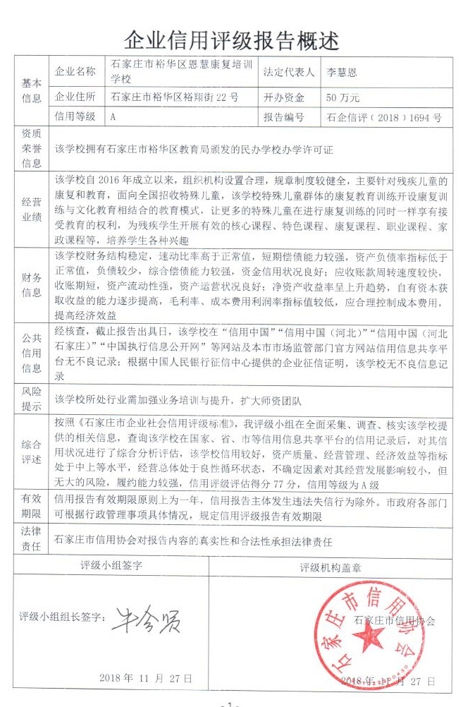 石家庄市裕华区恩慧康复培训学校