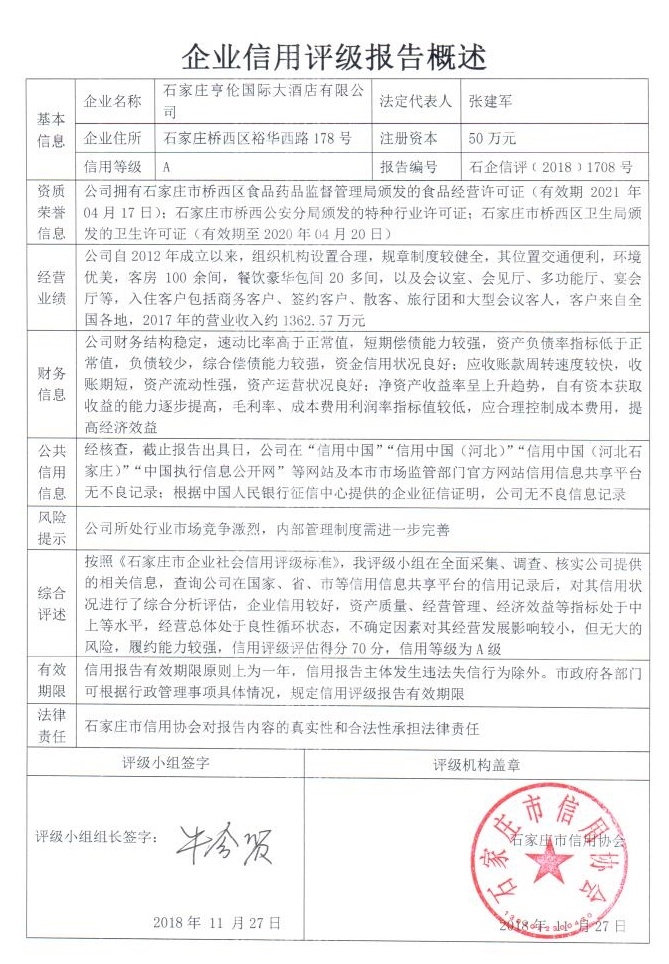 石家庄亨伦国际大酒店有限公司