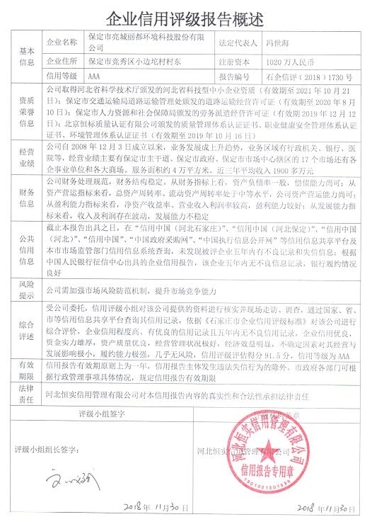保定市亮城丽都环境科技股份有限公司
