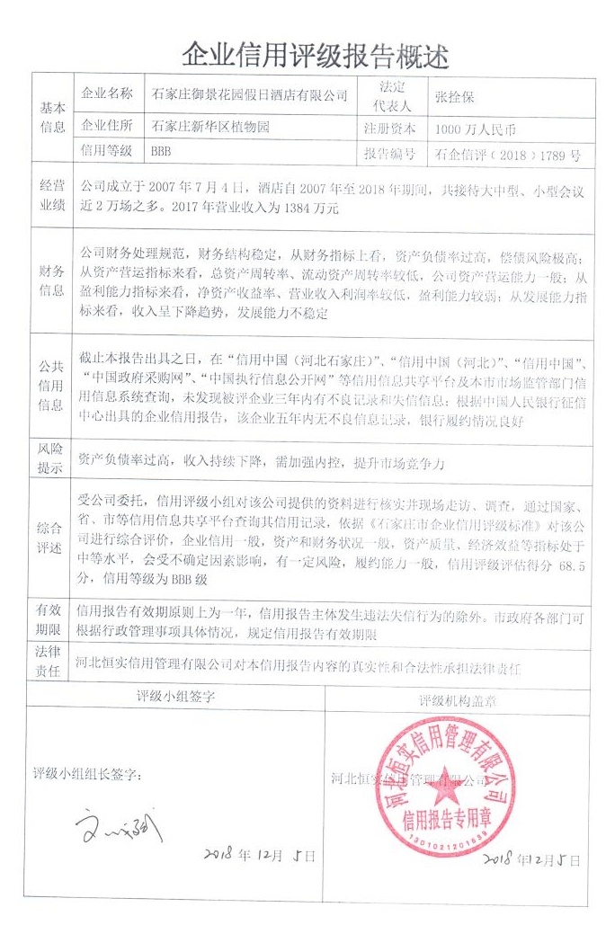 石家庄御景花园假日酒店有限公司