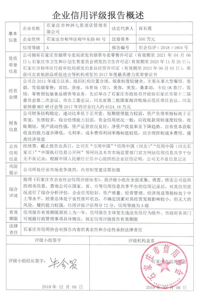 石家庄市神洲七星酒店管理有限公司