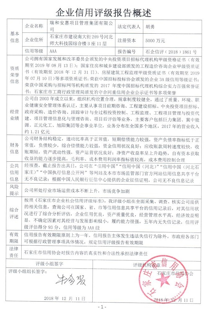 政府采购招投标信用报告专线电话:0311-85558992 18600625888