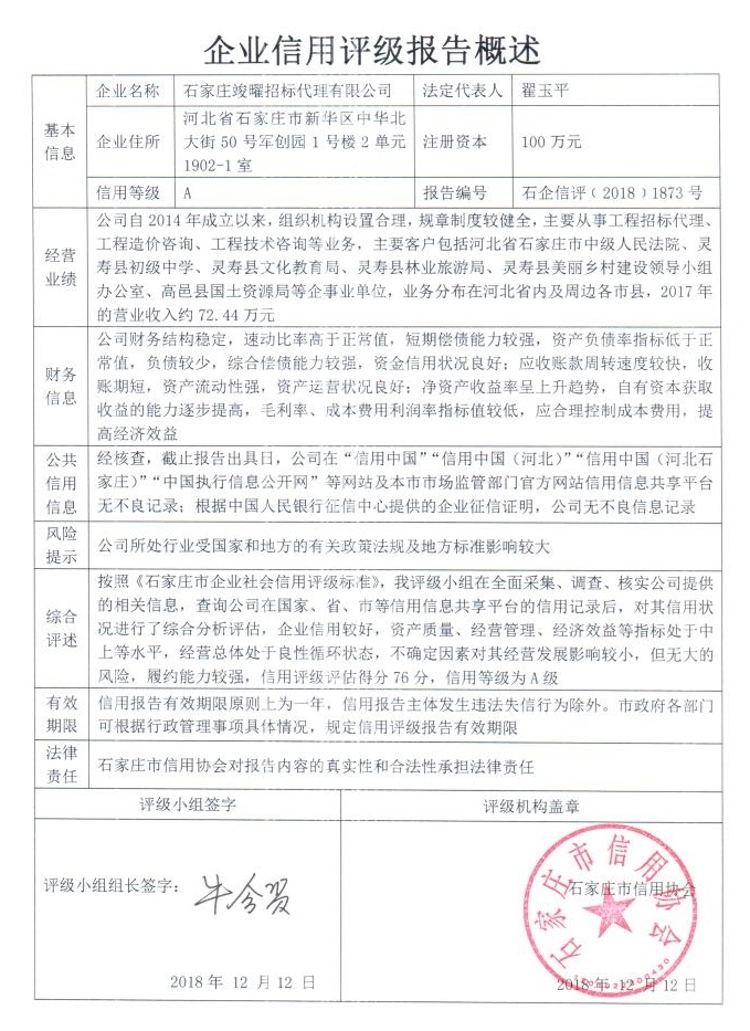 政府采购招投标信用报告专线电话:0311-85558992 18600625888