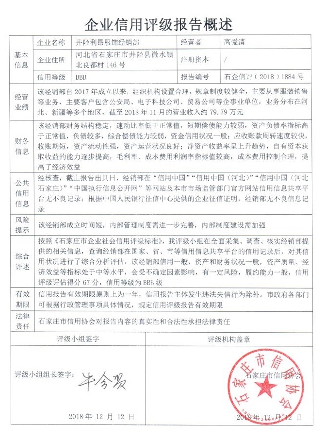 信用报告公示