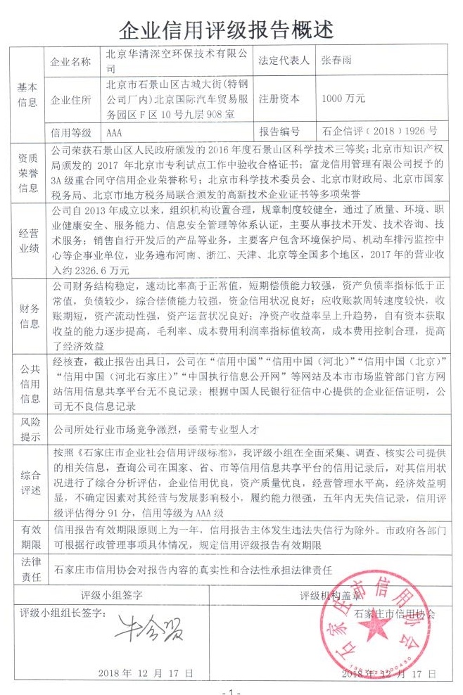 北京华清深空环保技术有限公司