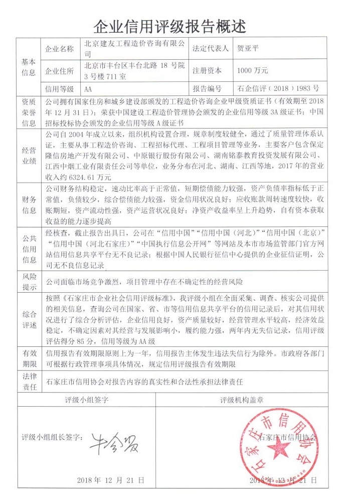 北京建友工程造价咨询有限公司