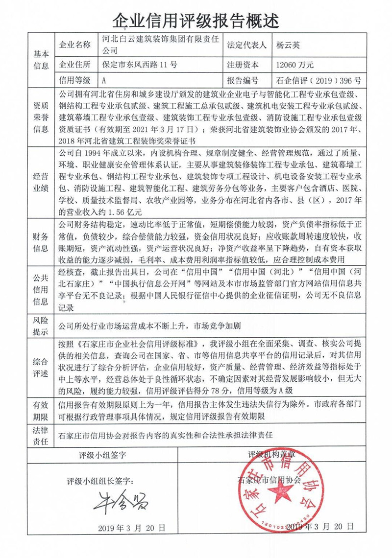 河北白云建筑装饰集团有限责任公司