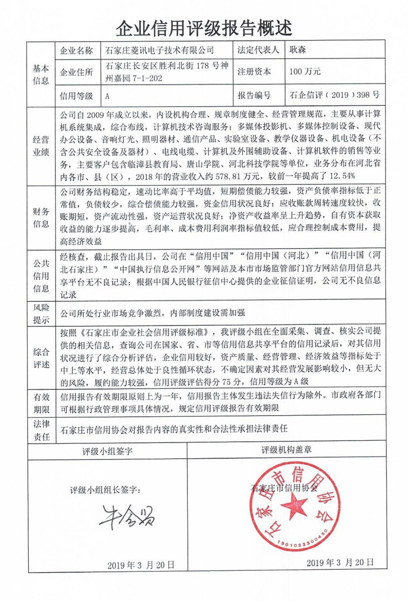 公司(评级)资质