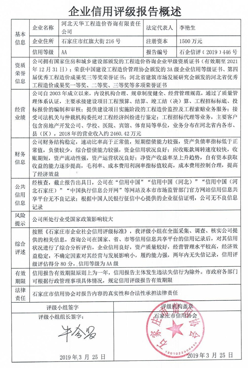 河北天华工程造价咨询有限责任公司