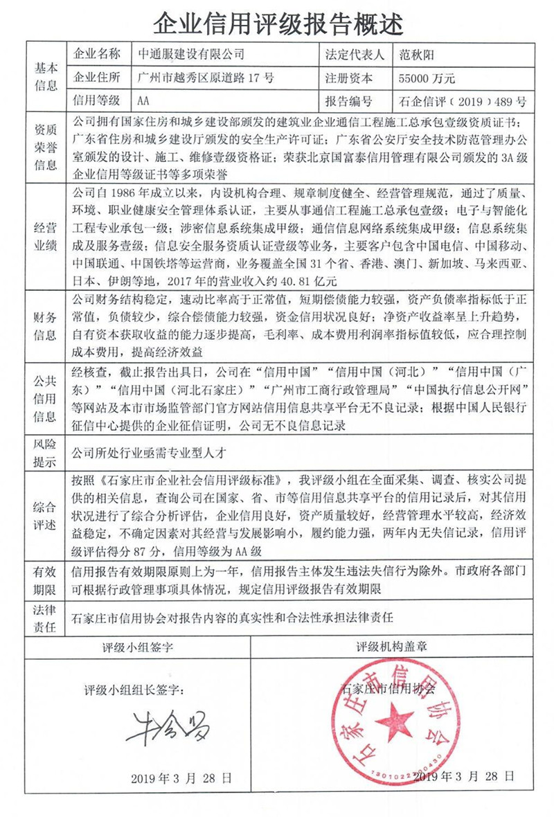 公司(评级)资质