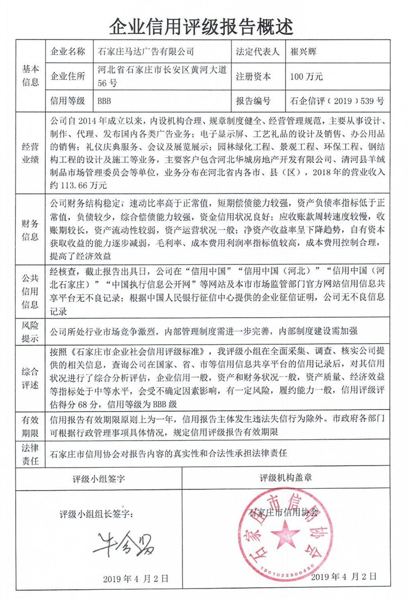 信用报告公示