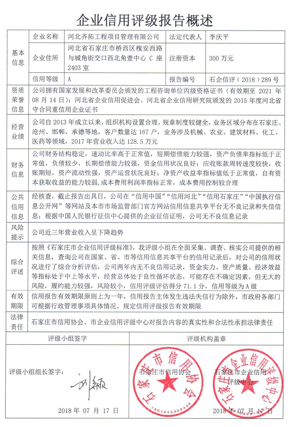 公司(评级)资质
