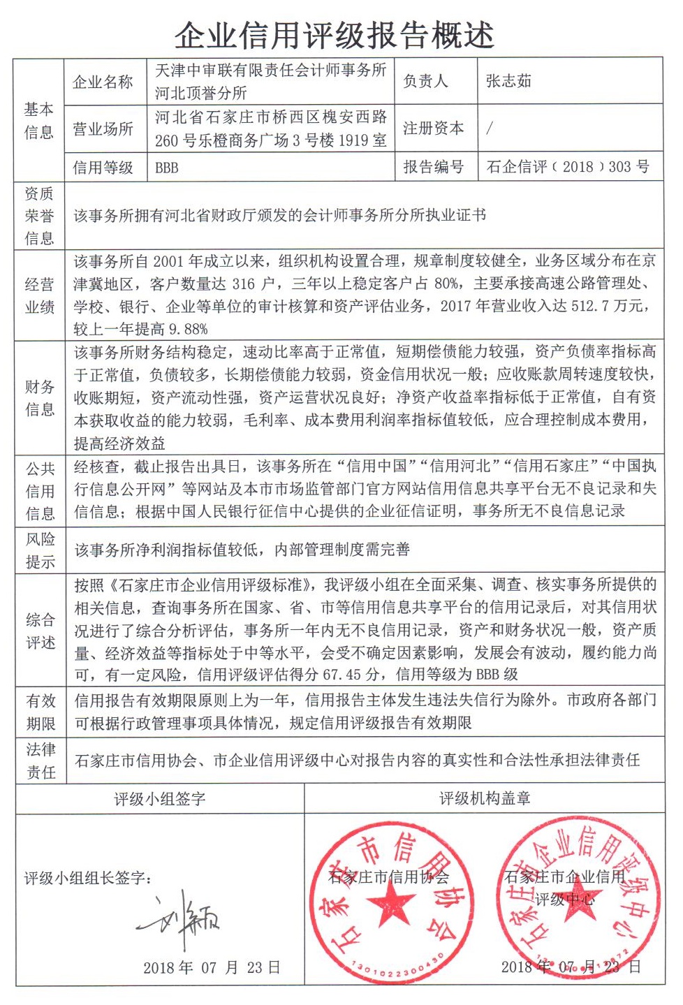 天津中审联有限责任会计师事务所河北顶誉分所
