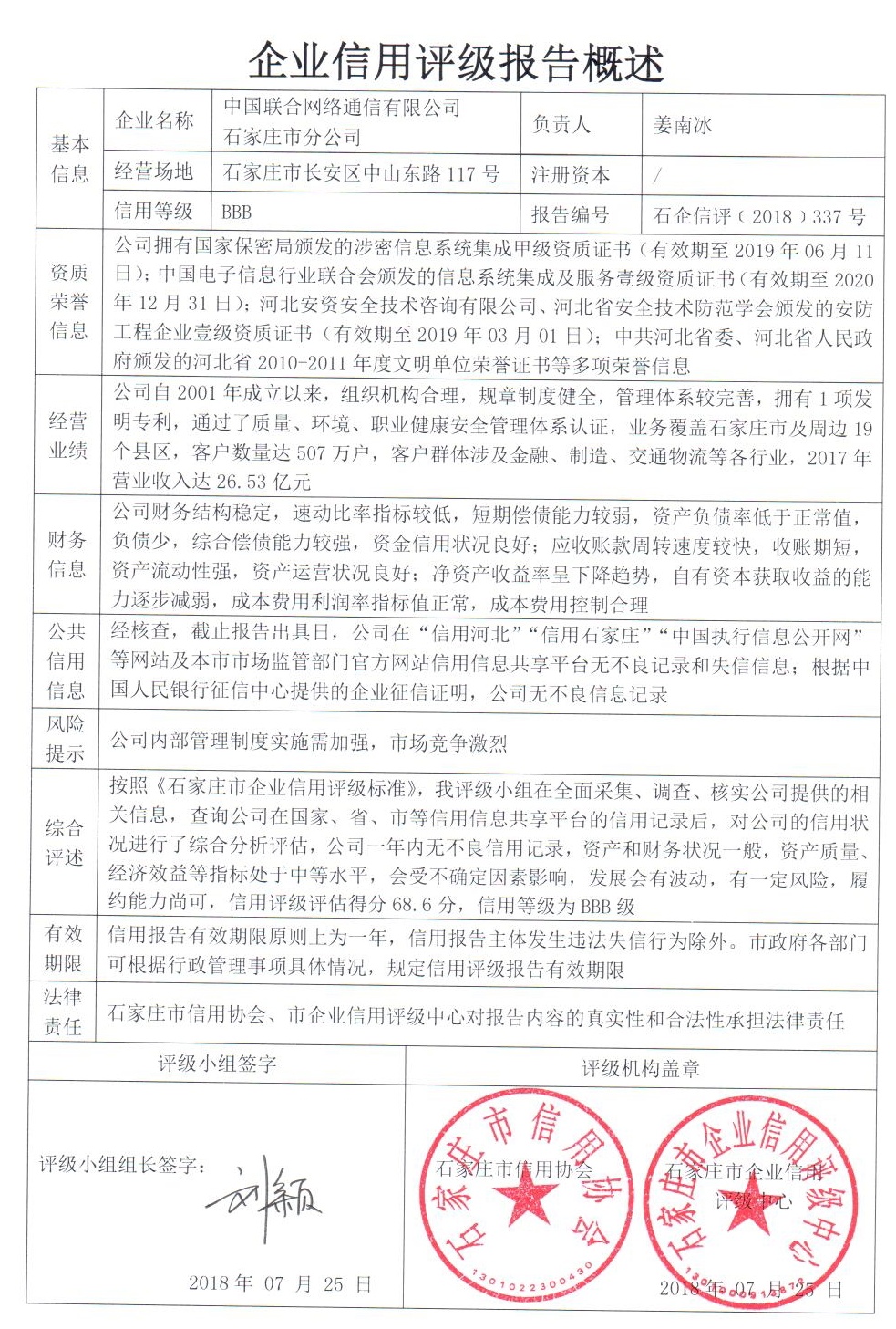中国联合网络通信有限公司石家庄市分公司