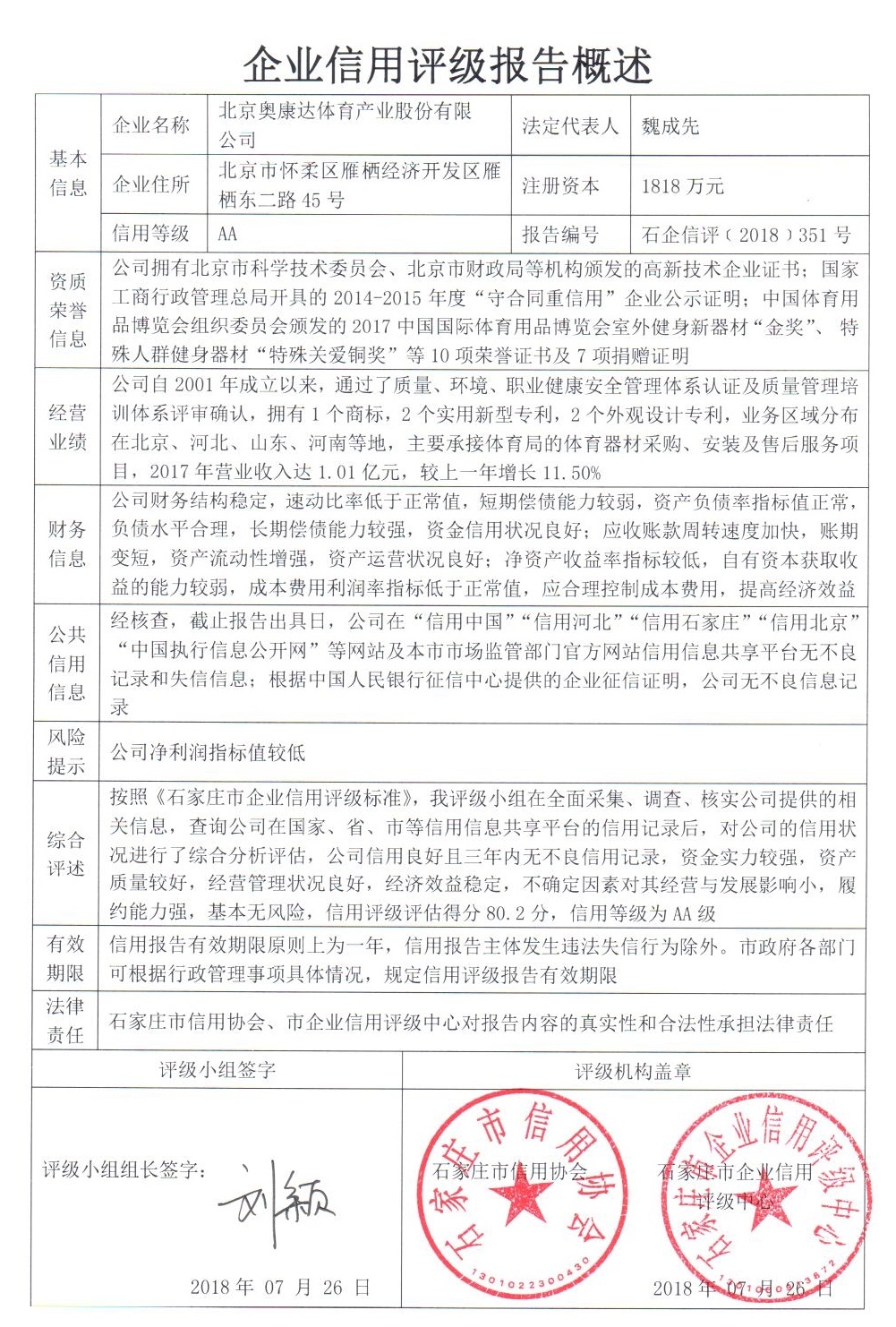 北京奥康达体育产业股份有限公司