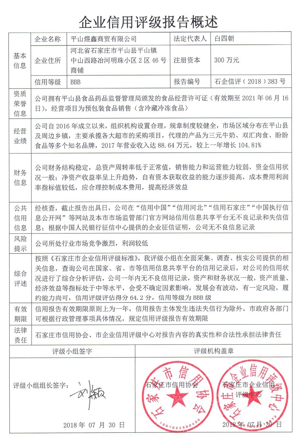 平山煜鑫商贸有限公司