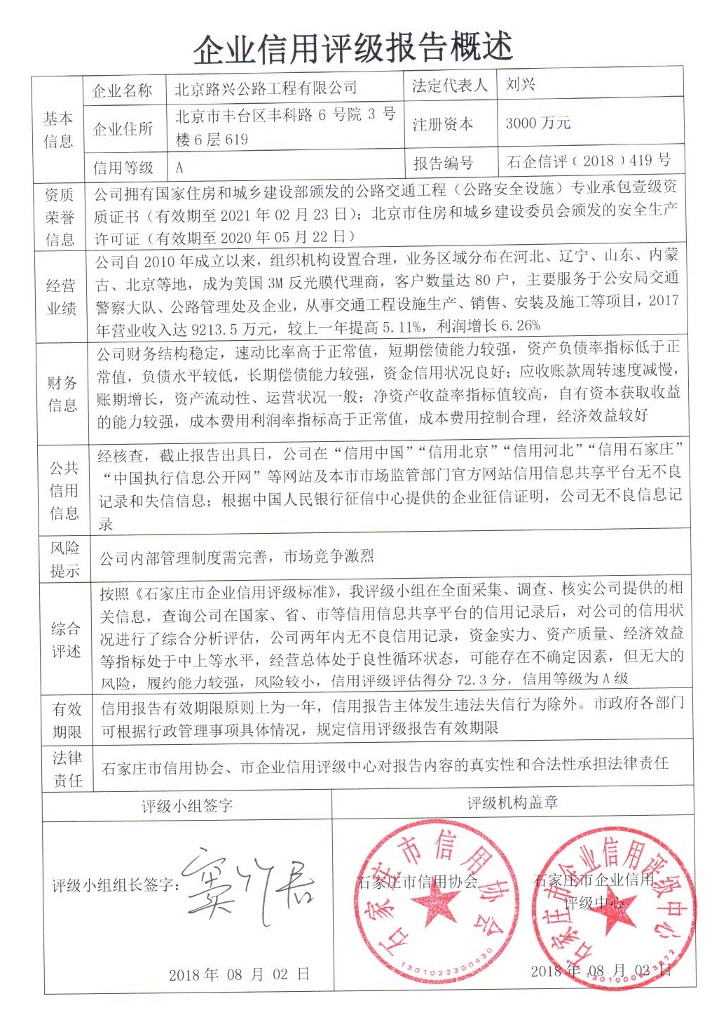 公司(评级)资质