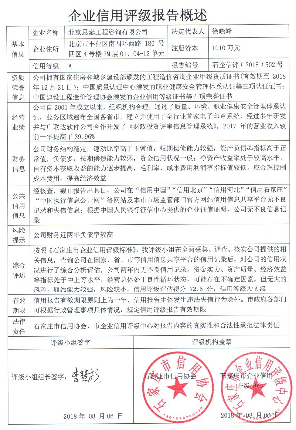 公司(评级)资质
