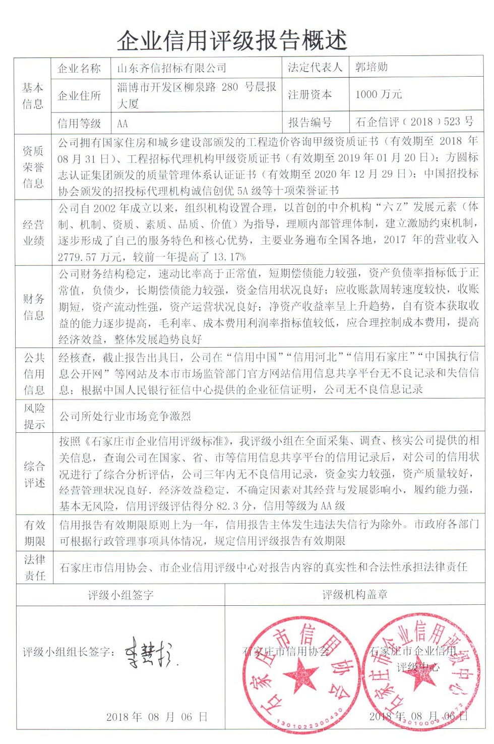 公司(评级)资质