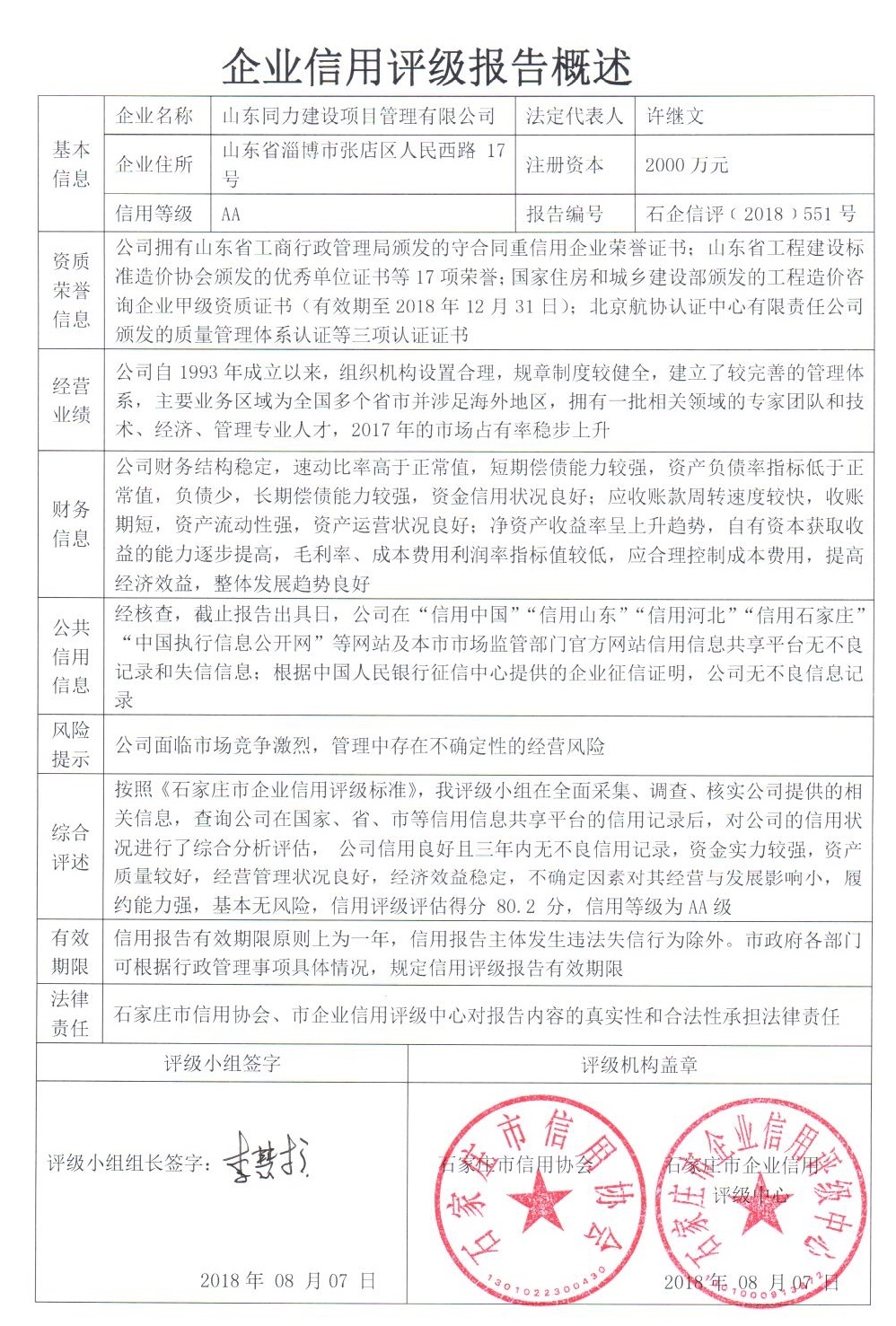 公司(评级)资质