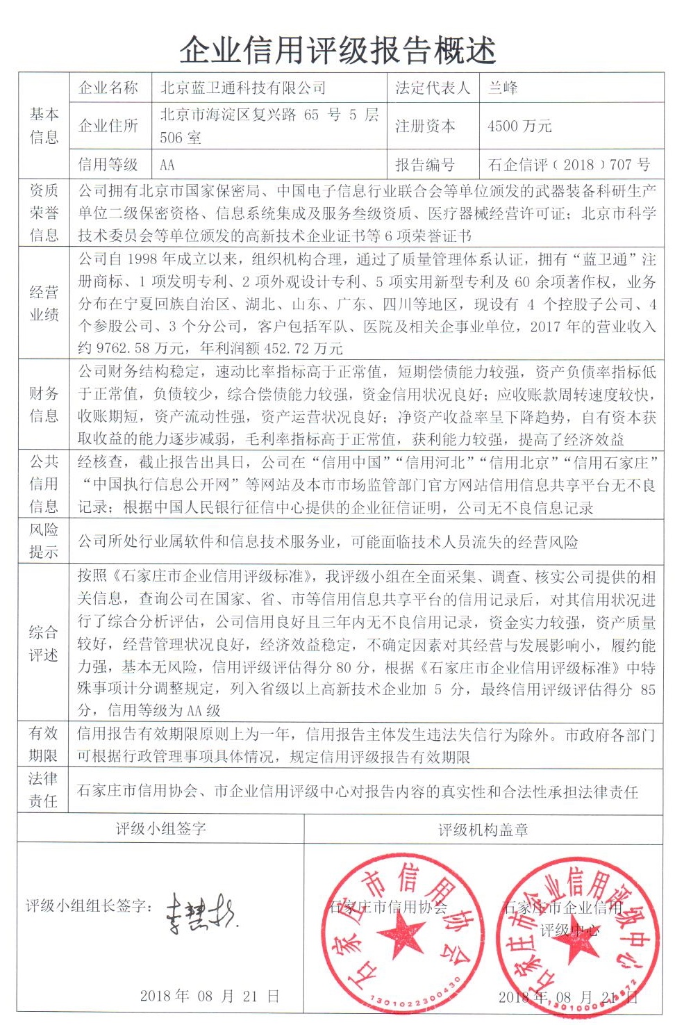 公司(评级)资质