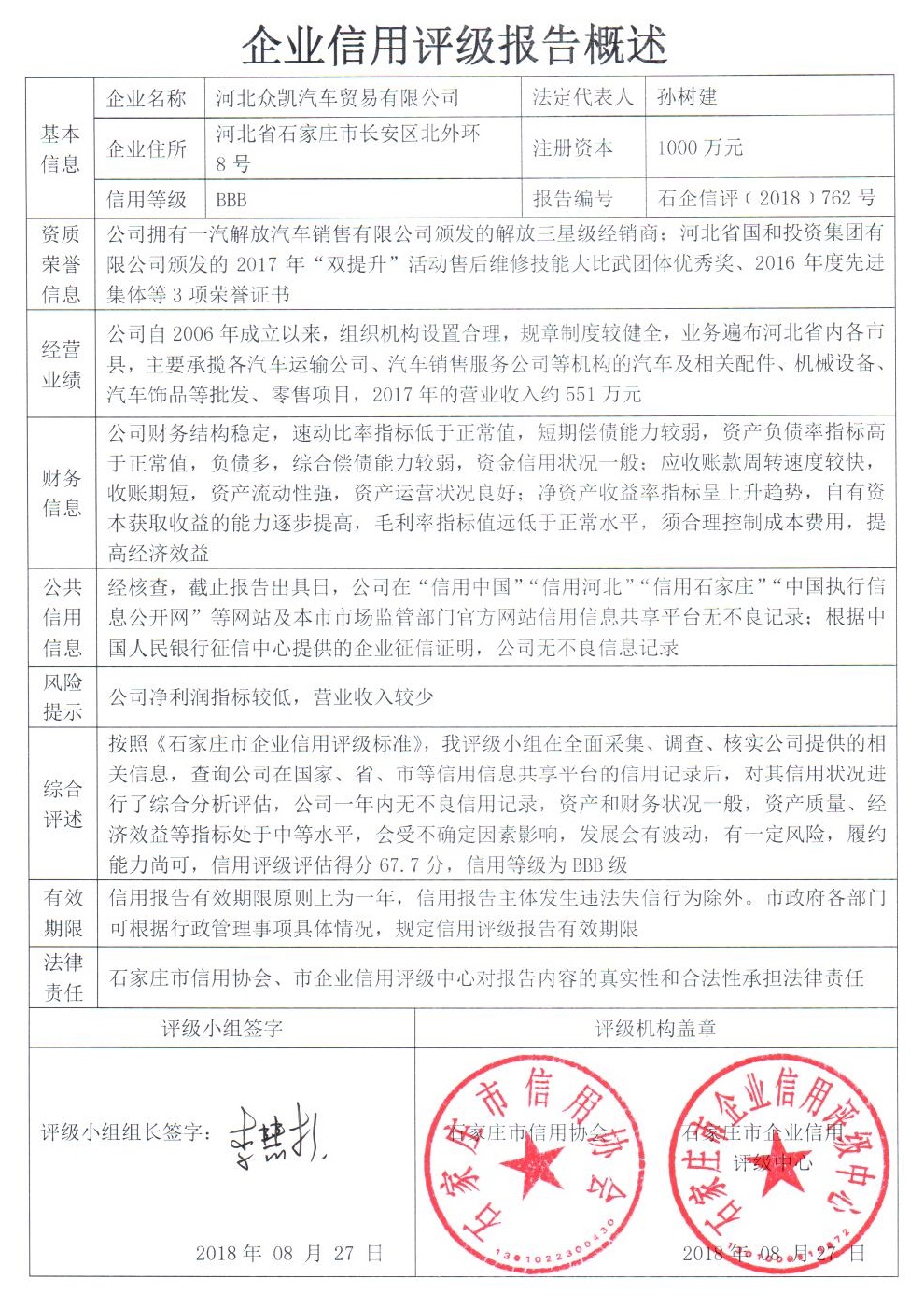 河北众凯汽车贸易有限公司