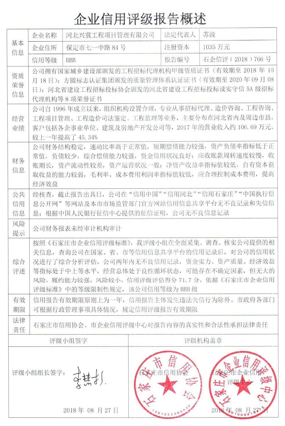 公司(评级)资质