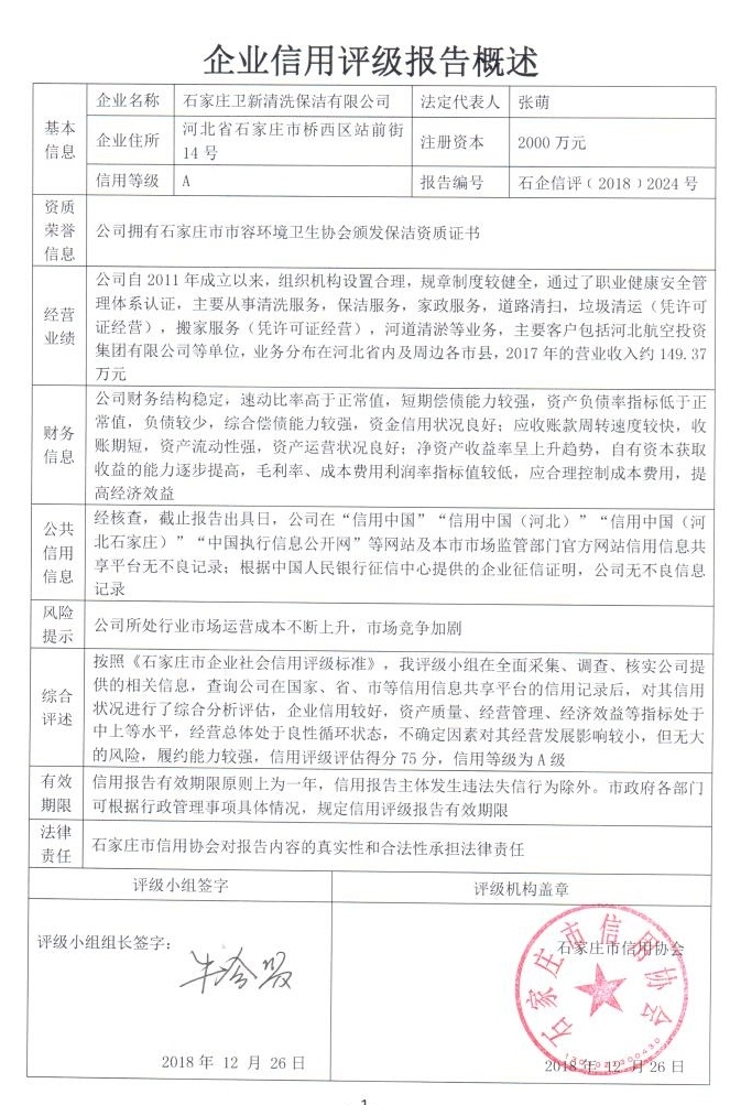 石家庄卫新清洗保洁有限公司
