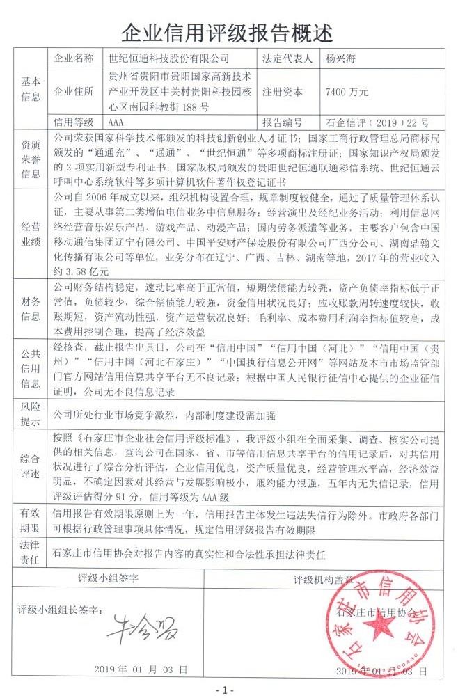 世纪恒通科技股份有限公司