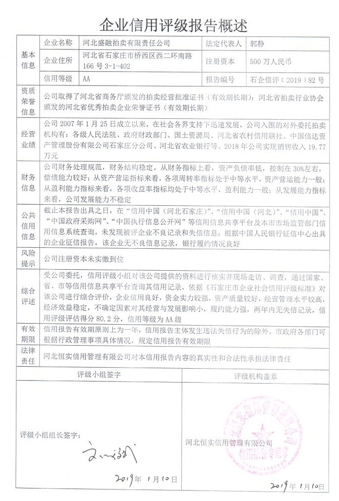 河北盛融拍卖有限责任公司