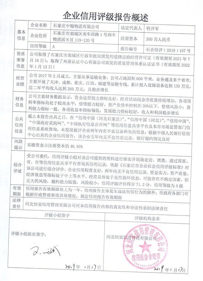 石家庄中翰物流有限公司