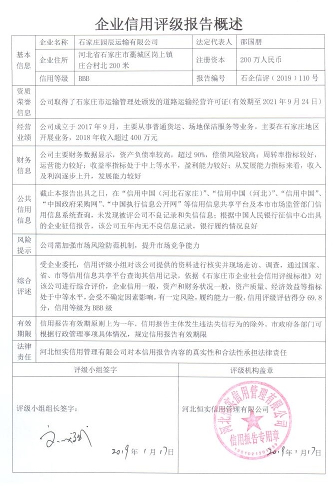 石家庄园辰运输有限公司