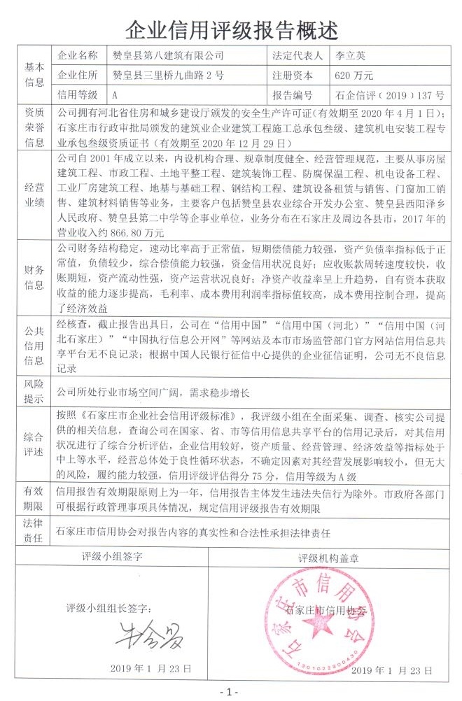 赞皇县第八建筑有限公司