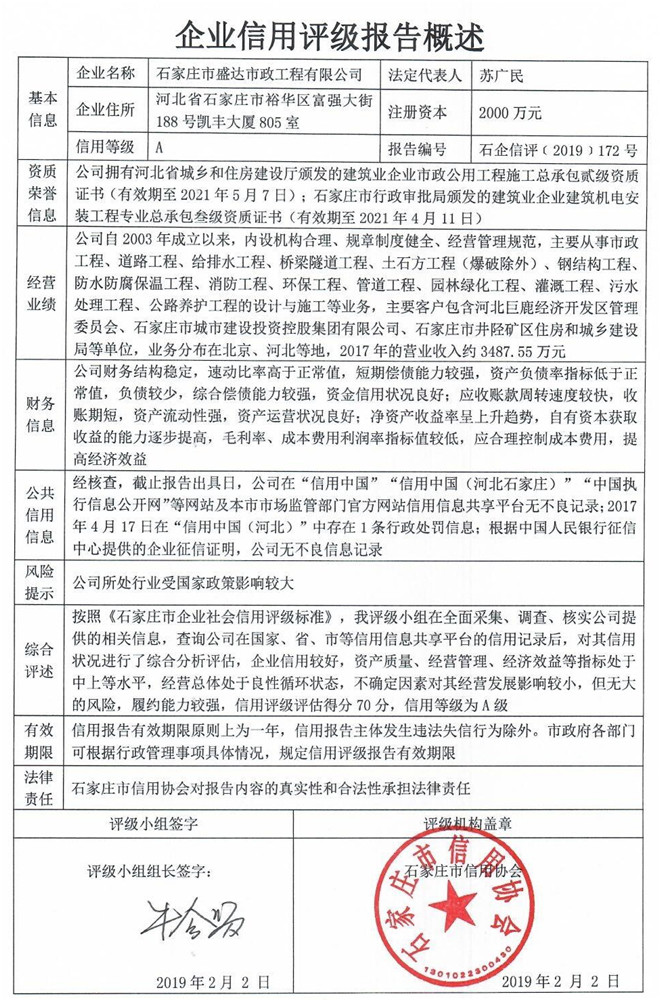 公司(评级)资质