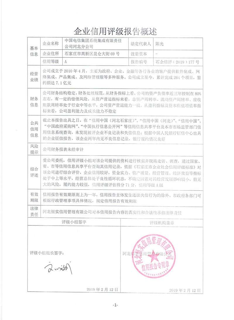 中国电信集团系统集成有限责任公司河北分公司
