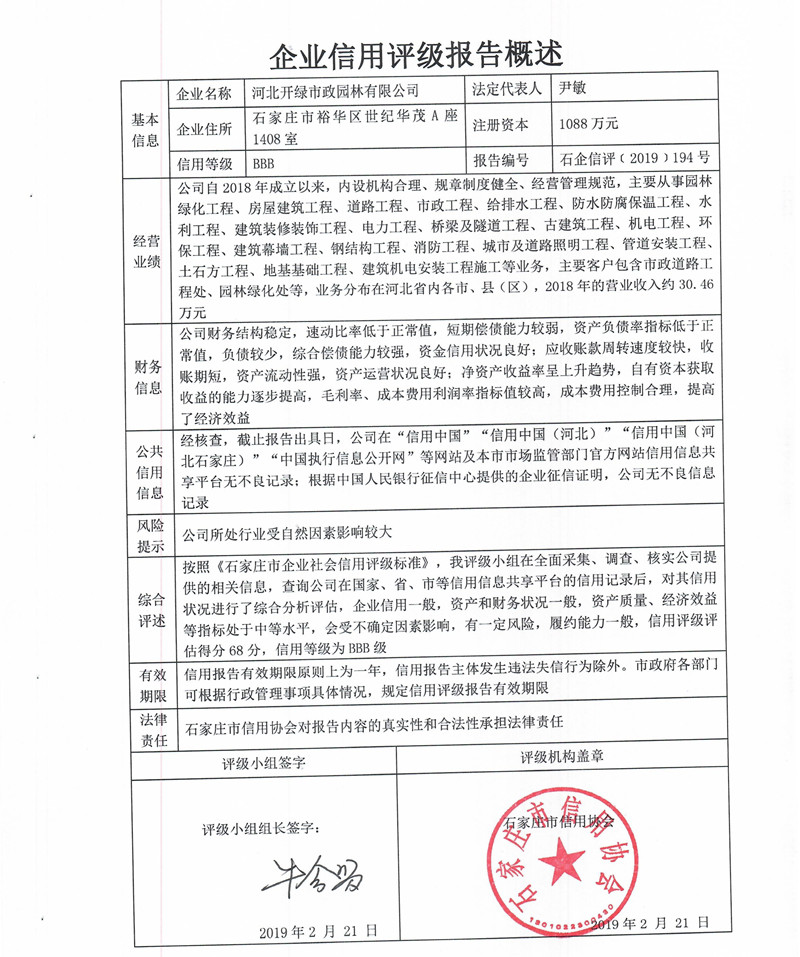 公司(评级)资质
