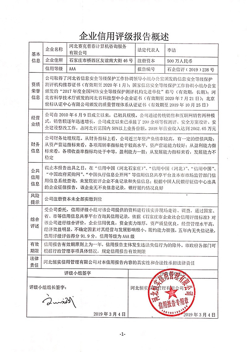 公司(评级)资质