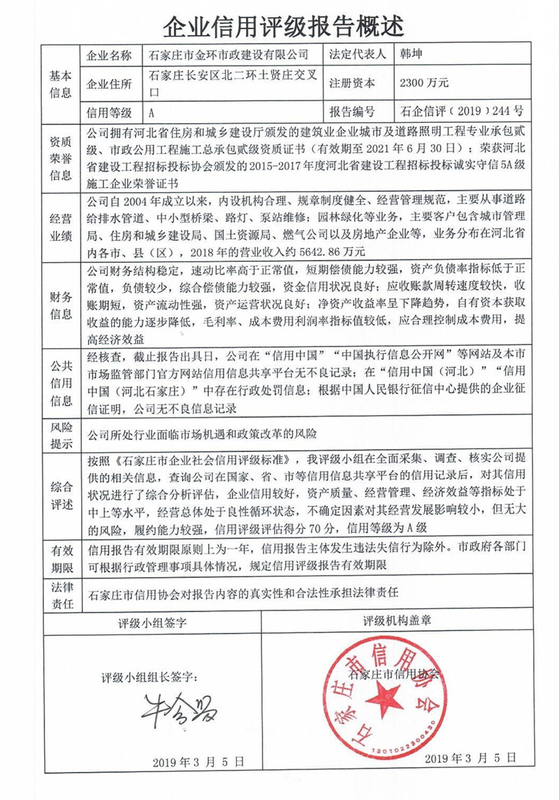 石家庄市金环市政建设有限公司