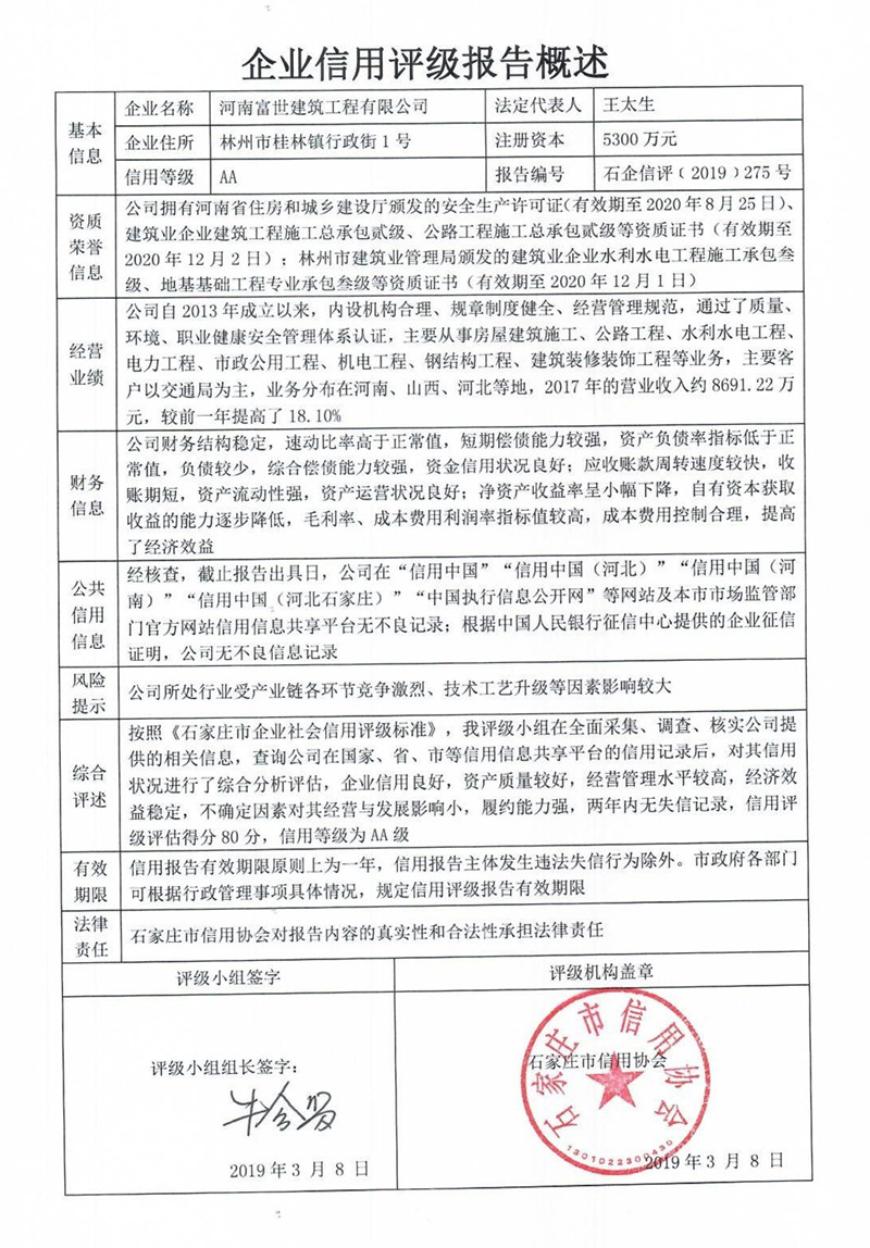 河南富世建筑工程有限公司