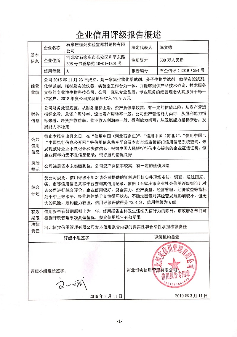 信用报告公示