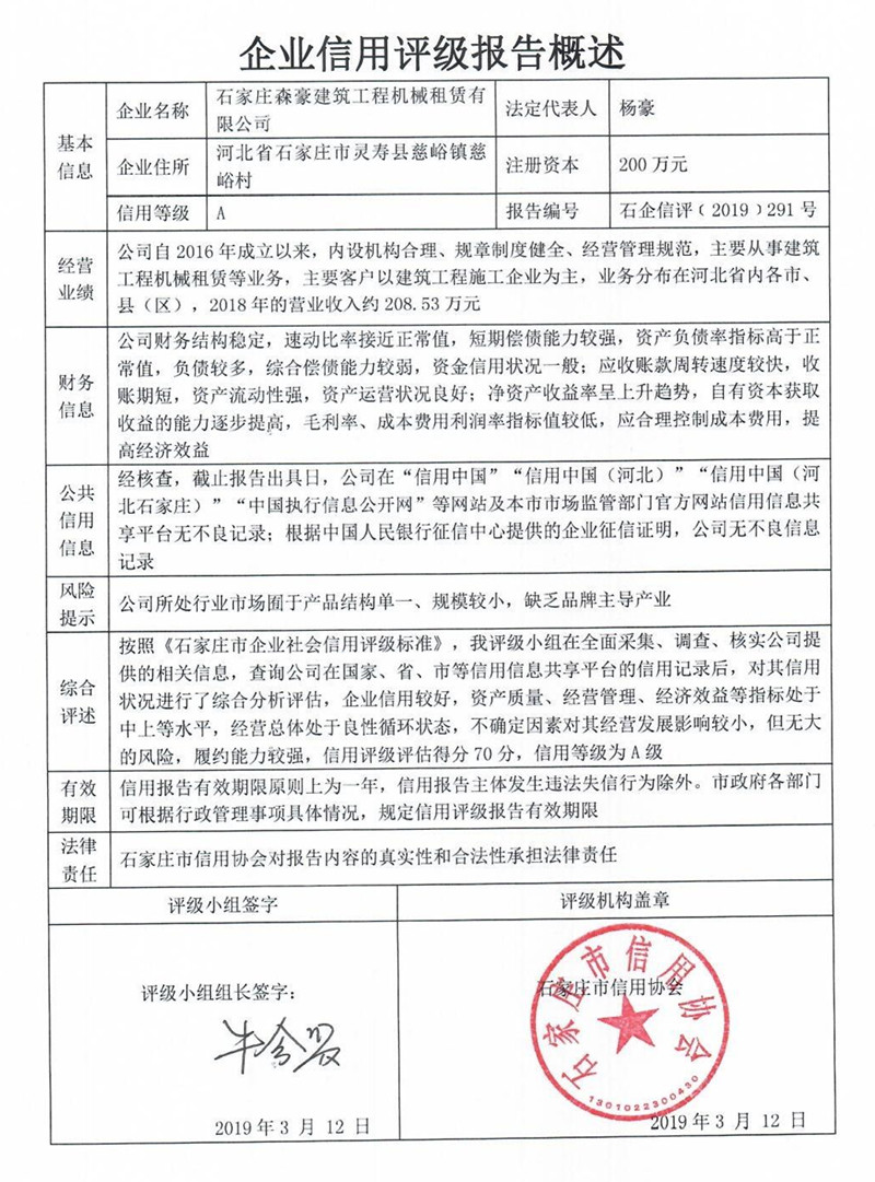 石家庄森豪建筑工程机械租赁有限公司